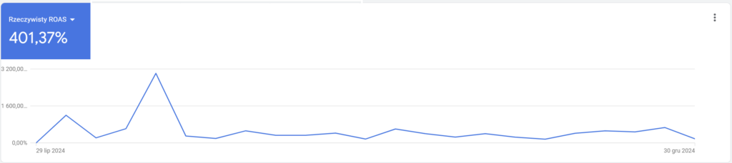Od sierpnia do grudnia 2024 roku osiągnęliśmy ROAS na poziomie 450%: